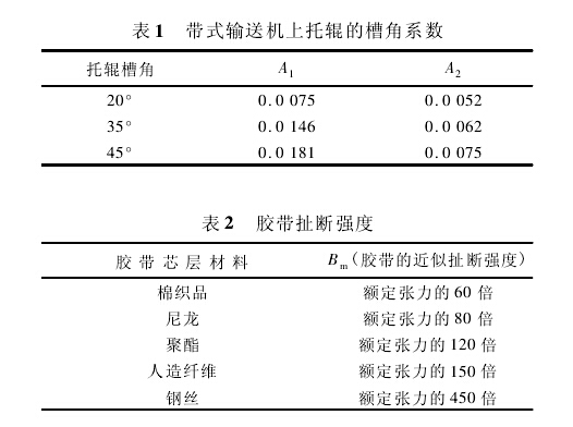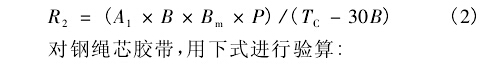 由式1可計(jì)算得出凹弧段的最小半徑。但是當(dāng)膠帶的張力過(guò)低時(shí),膠帶的邊緣處有可能產(chǎn)生皺曲,將無(wú)法保證皮帶輸送機(jī)的安全運(yùn)行,因此需對(duì)該半徑值進(jìn)行必要的校核。鑒于目前國(guó)內(nèi)尚無(wú)成熟的計(jì)算公式可循,建議采用美國(guó)輸送設(shè)備制造商協(xié)會(huì)聯(lián)合會(huì)推薦的公式對(duì)最小半徑進(jìn)行驗(yàn)算,以保證膠帶具有足夠張力,避免在凹弧段處的膠帶邊緣出現(xiàn)零張力'對(duì)織物芯膠帶,用下式進(jìn)行驗(yàn)算: