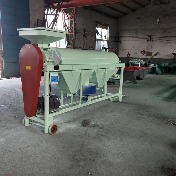 物料投放到進(jìn)料斗后,打開電源,把風(fēng)力調(diào)到適中,機(jī)器篩面做往復(fù)式運(yùn)動(dòng),風(fēng)機(jī)高速運(yùn)轉(zhuǎn),打開下料插板,物料落到篩面上篩選,機(jī)器共有三層篩網(wǎng),一層篩選出來的是大于水稻的雜質(zhì),水稻和小于稻種的雜質(zhì)落二層篩網(wǎng)上,塵土小于水稻雜質(zhì)落到三層篩網(wǎng)上,各自從前端的出料篩出來,粉塵通過抽塵風(fēng)箱抽出來。